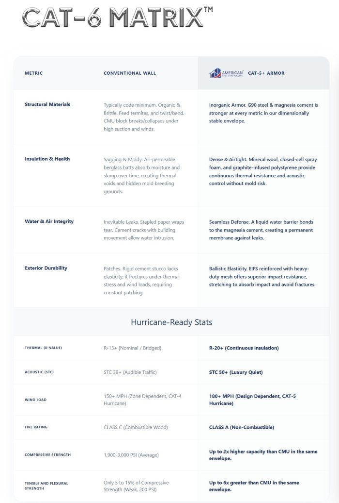 Traditional homes are typically built to meet minimum code requirements. ASCB homes are engineered for the coastal realities of higher wind loads, moisture exposure, and long-term performance.
